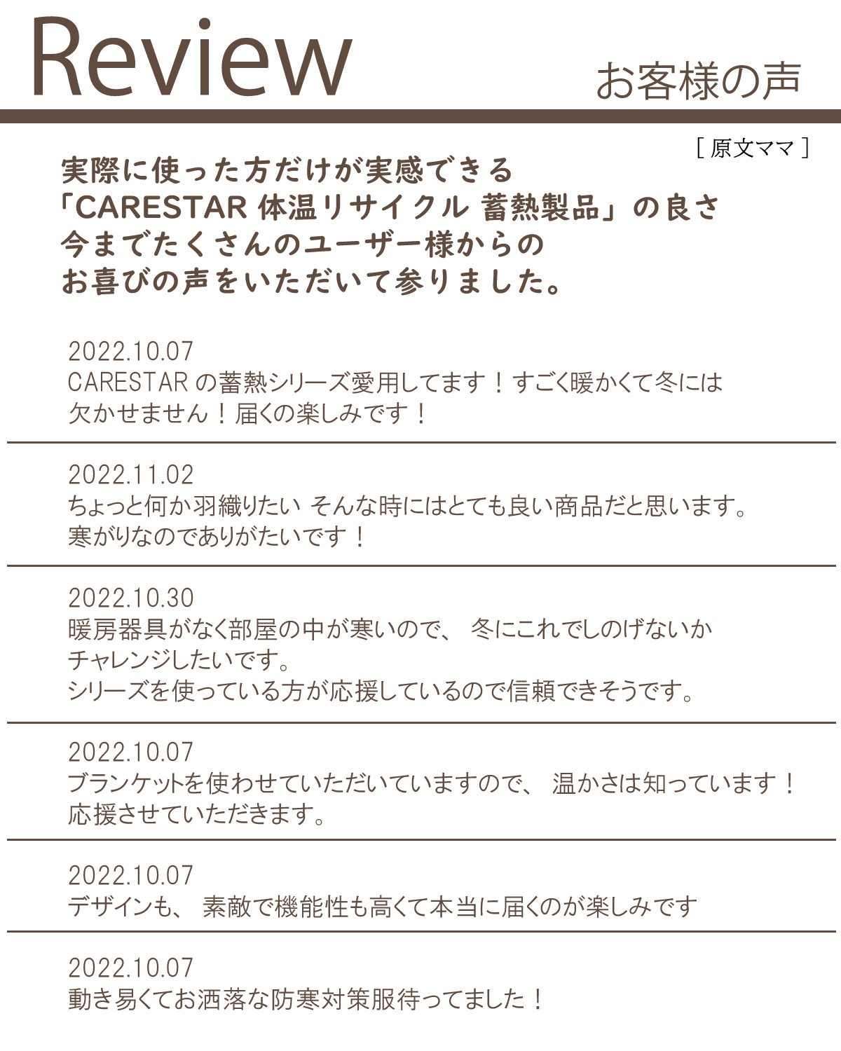 ・電熱でも遠赤外線でもない。自分の体温をリサイクルするから、熱すぎず自然で優しい暖かさが持続する