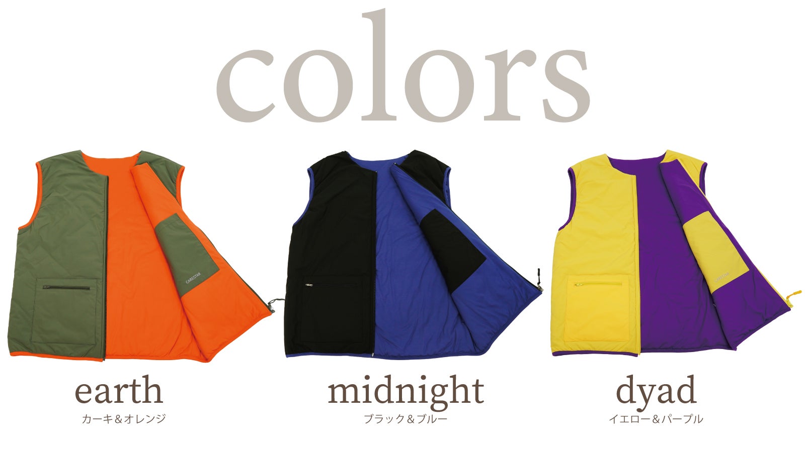 カラー:アース(カーキ×オレンジ)、ミッドナイト(ブラック×ブルー)、ダイアード(イエロー×パープル)