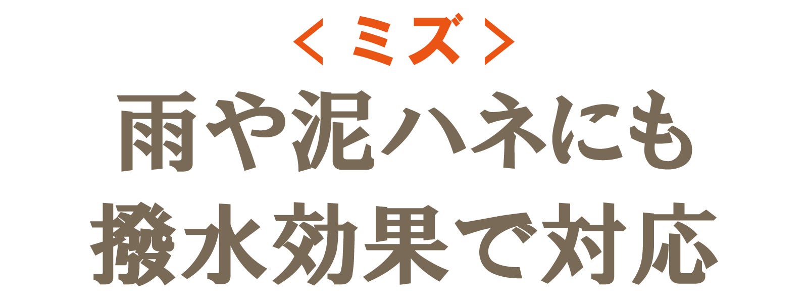 ※撥水効果のある生地で、雨や雪、海や川での使用も水を弾いて濡れることなく使用できます。