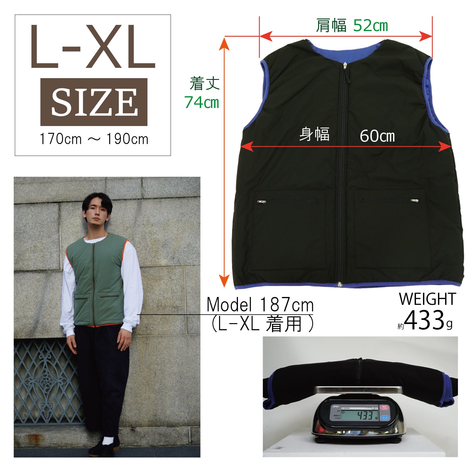モデル身長187cm →着用L-XLサイズ(着丈 74cm 身幅60cm、肩幅52cm)
