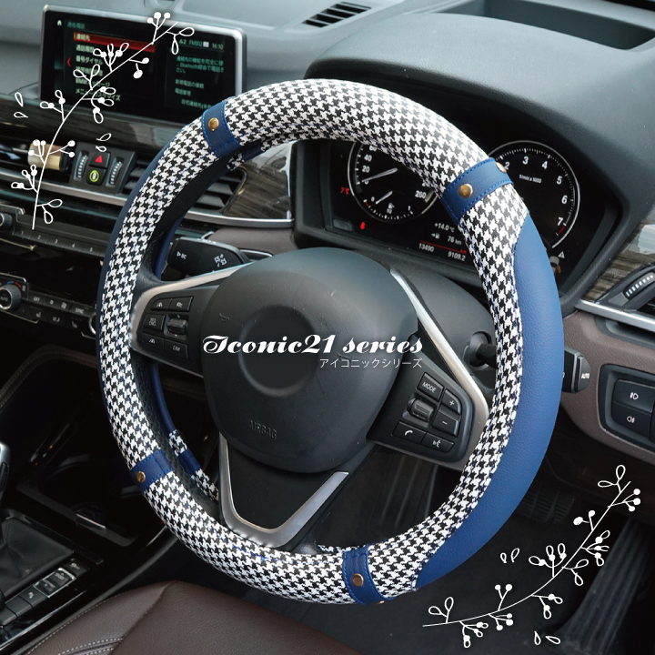 リニューアル!大人気アイコニック21からおしゃれな千鳥格子柄のハンドルカバー登場!車内の一番こだわるハンドルのグリップ向上 タント NBOX タフト キャンバス スペーシア ハスラー ロッキー ルーミー VOXY ノア などに適合