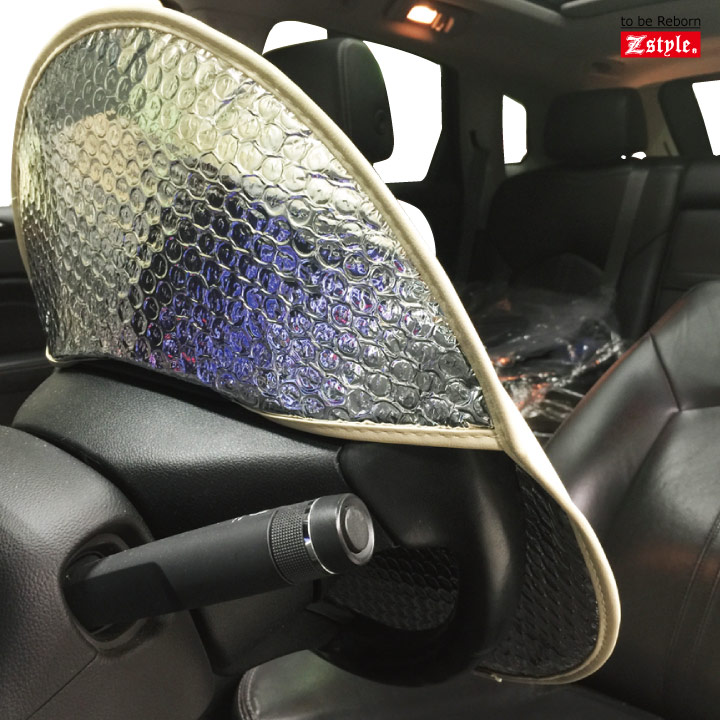 大判の車用ハンドルサンシェードはハイグレードなレザータイプ